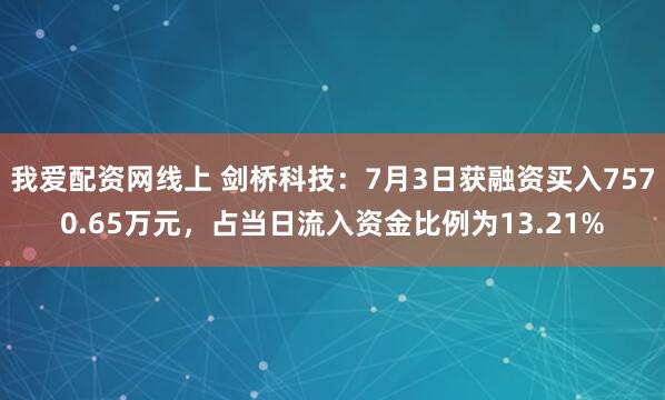 我爱配资网线上 剑桥科技:7月3日获融资买入7570.65万元,占当日流入资金比例为13.21%