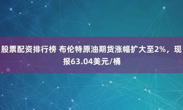 股票配资排行榜 布伦特原油期货涨幅扩大至2%,现报63.04美元/桶